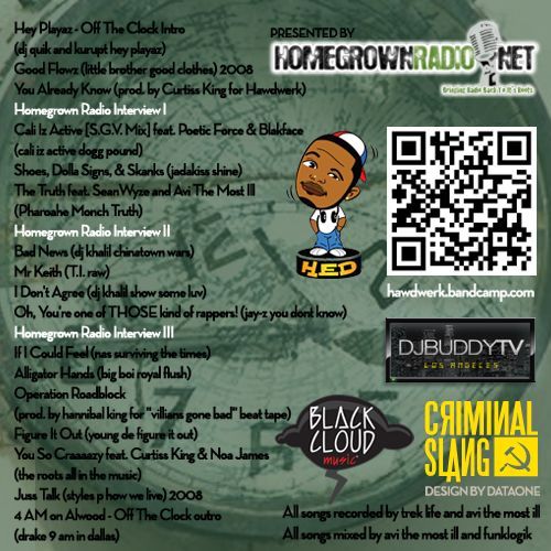 West Covinas own Hawdwerk is back with his latest mixtape Off The Clock. Hosted by the good folks of Homegrown Radio Dj Chuck Dizzle (93.5 Kday, homegrown radio) and blended by Dj Hed (blu division official dj, homegrown radio), this is a mixtape in its truest form. With help from a list of respective artists including Curtiss King, Blakface, Noa James, and Poetic Force; Hawdwerk delivers a straight to the point collection of tracks, touching on various topics, and leaving listeners with an open ear for what he has coming next. Available for FREE download