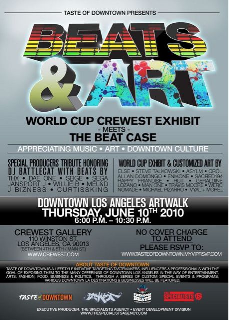 also invite all of you out to the Beats & Art Showcase tomorrow night in Downtown LA that I will be apart of. There will be a Producer Showcase honoring the legendary Battlecat, and will feature participants such as Dae One, Swiff D, THX and many more. More information is attached on the flyer.