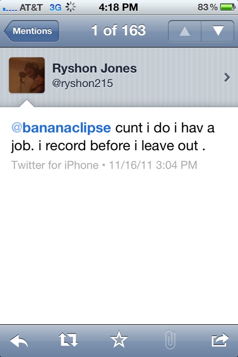 Ryshon Jones job update He didn’t have to cry about it. Emo rappers get they feelings hurt too easily. Share this: Click to share on Facebook (Opens in new window) Facebook Click to share on X (Opens in new window) X Like Loading... Related Author: bananaclipse i like turtles View all posts by bananaclipse