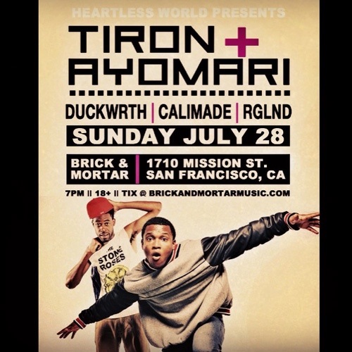 CaliMade performs with TiRon & Ayomari 7/28 My bay bros CaliMade got a show wit my LA Bros TiRon & Ayomari and I’m mad I didn’t plan on being there 😦 TICKETS HERE