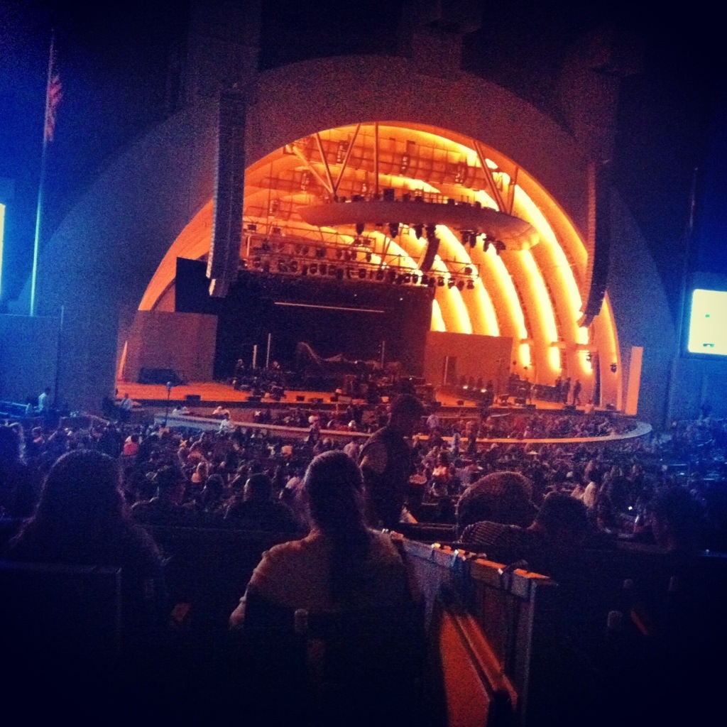 Enter: Hollywood Bowl. Parking? Make right, make left, BAM! Parked. Easy peasy. Cut a shit ton of people, tickets scanned. CUTSIES! Find seats. Damn good! Had the middle ground seats. Like maybe at the edge of the 1/3rd portion of the venue. At maybe a 45angle facing stage right (our left, DUH!). We missed the openers Austra. I COULD NOT CARE LESS! I was so happy to see them on the bill. Meant we could be a little late and still see the 2 gawdly groups I came to see. And just like that IT WAS TIME!