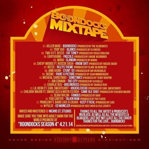 The Official Boondocks Season 4 Mixtape Featuring dem Two-9 boys. And whoever did the artwork got chuck Inglish name wrong =\ The Official Boondocks Season 4 Mixtape Share this: Click to share on Facebook (Opens in new window) Facebook Click to share on X (Opens in new window) X Like Loading... Related Author: bananaclipse i like turtles View all posts by bananaclipse