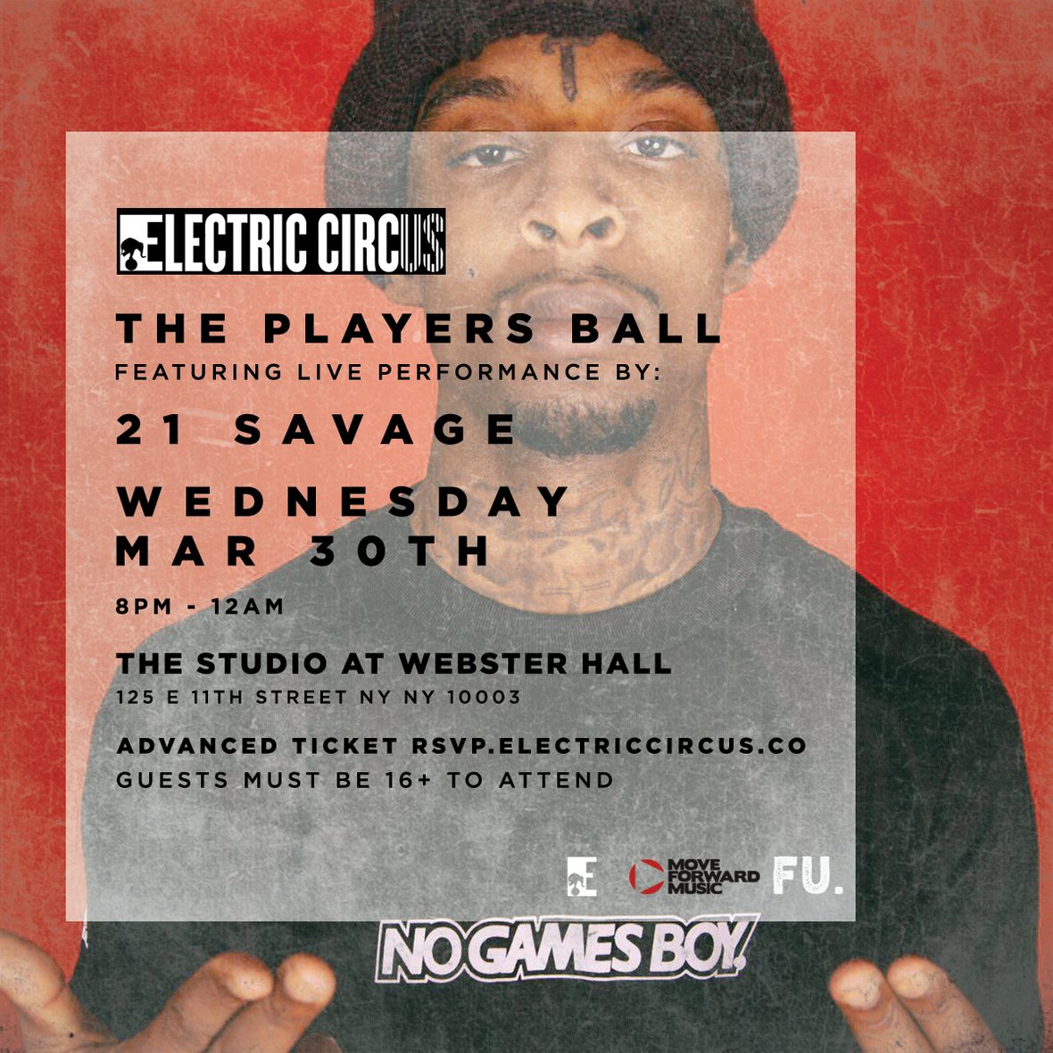 Electric Circus presents #PlayersBallNYC with 21 Savage at Webster Hall